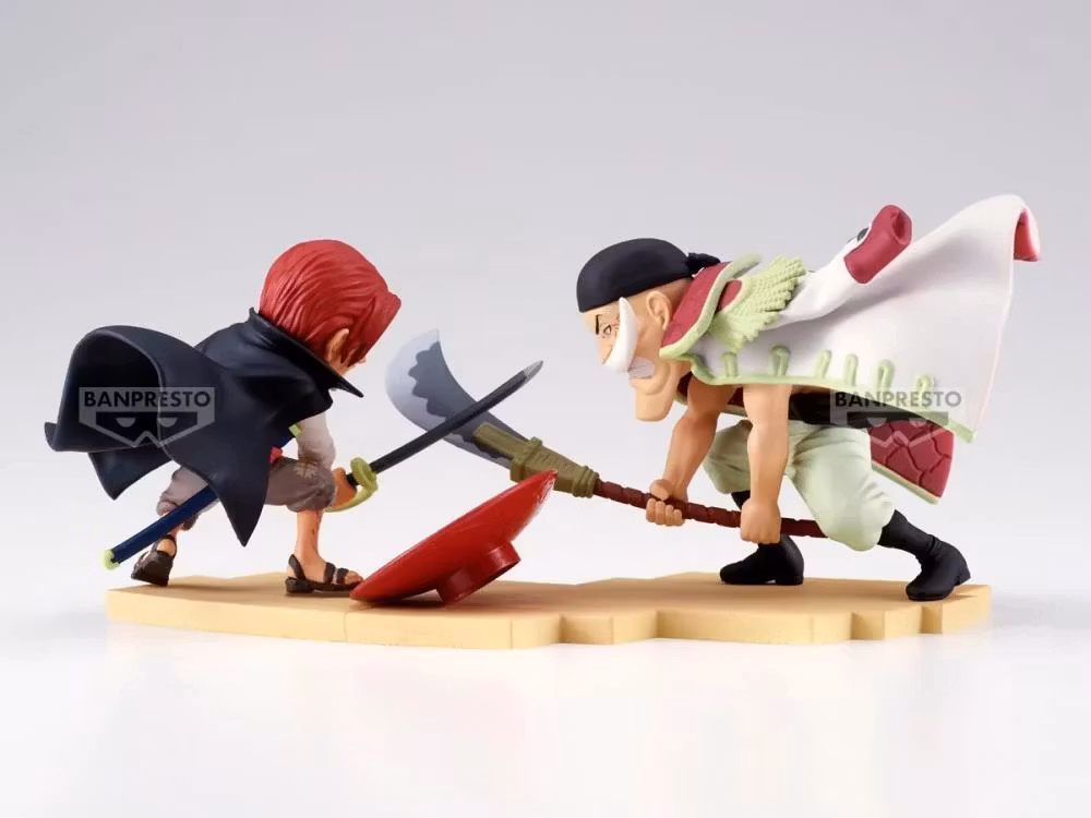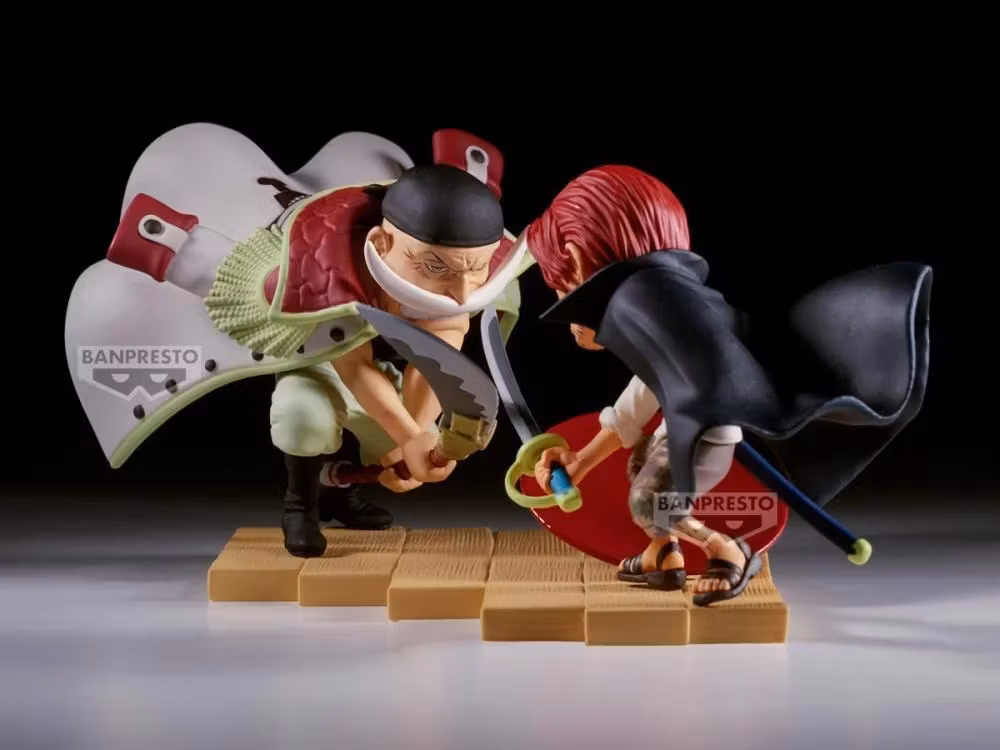Whitebeard och Shanks är cirka 5,1 tum långa och ses i denna ikoniska scen. Se till att samla in detta och förbättra din display med andra otroliga WCF!