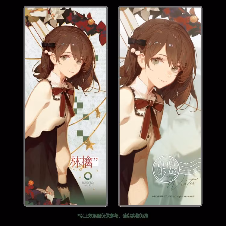 Based on an illustration by the popular artist Ask, Ringo appears here with a white blouse and dark skirt, rather than the holiday-themed colors of the previous release. The wreath she poses in front of is also recolored.