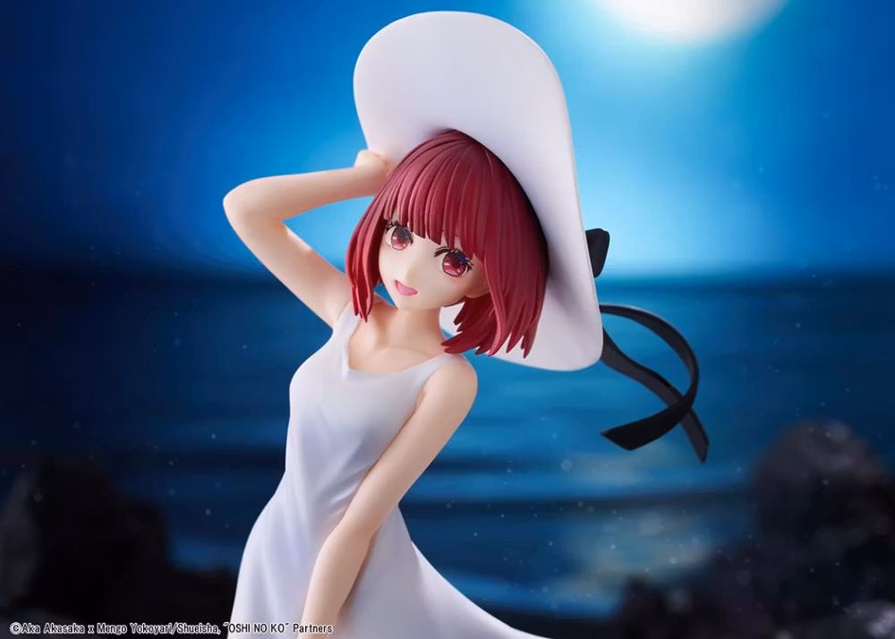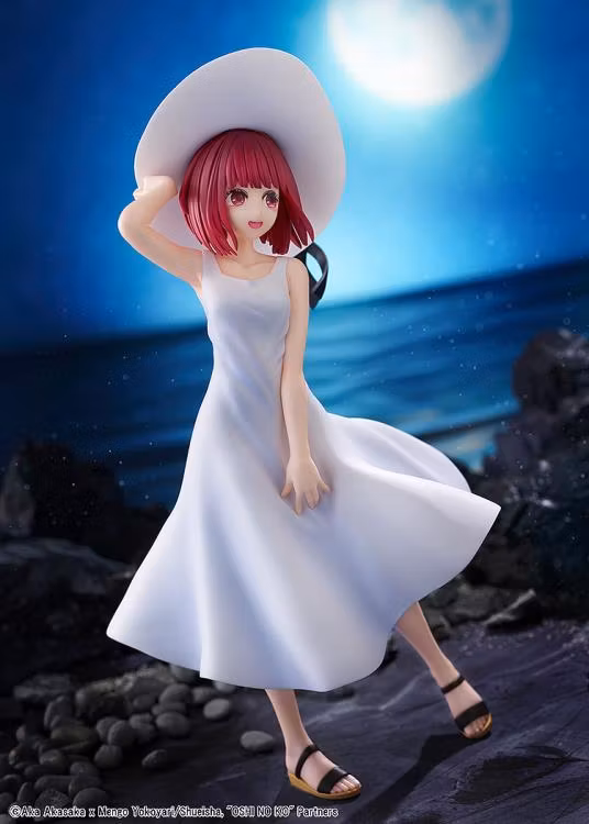 Presenterar en figur av Kana Arima i sin vita klänning i hennes "Fullmåne...!" musikvideo från animeserien Oshi no Ko. Hennes vita klänning flyter i vinden, och hon är omsorgsfullt skulpterad i en pose som tittar på betraktaren och ler försiktigt. Det är en figur som skildrar en annan sida av Kana Arima, som vanligtvis är känd för sin ljusa och viljestarka personlighet.