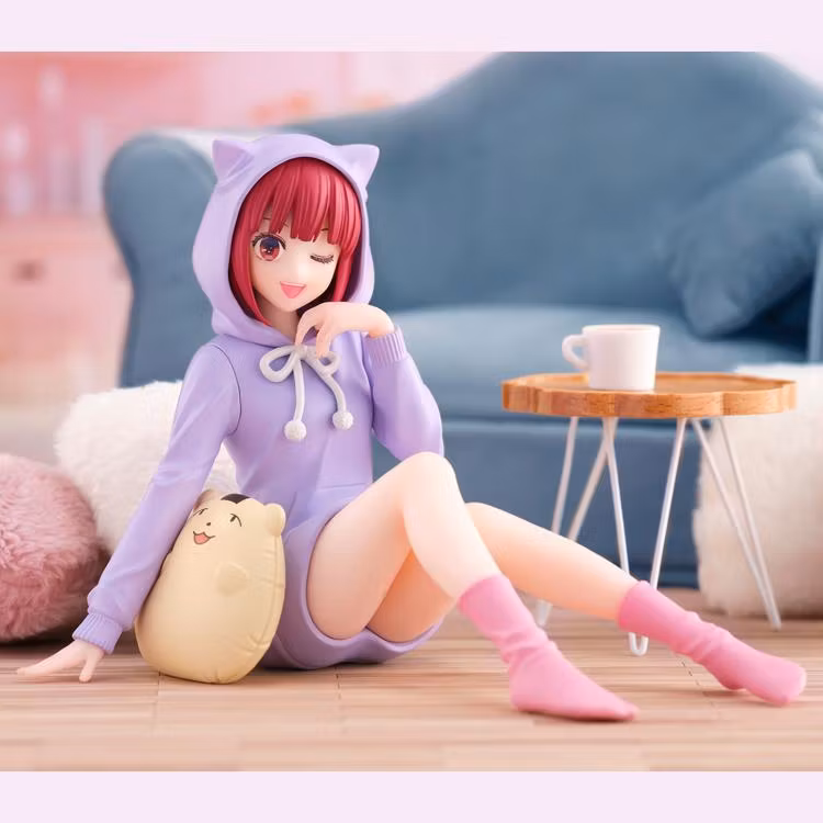From the popular anime series Oshi no Ko comes this Relax time figure of the idol Kana Arima! Wearing a pair of comfy cat pajamas, she flashes a big grin as she winks at her friends. Order your figure today and add to your Oshi no Ko collection!