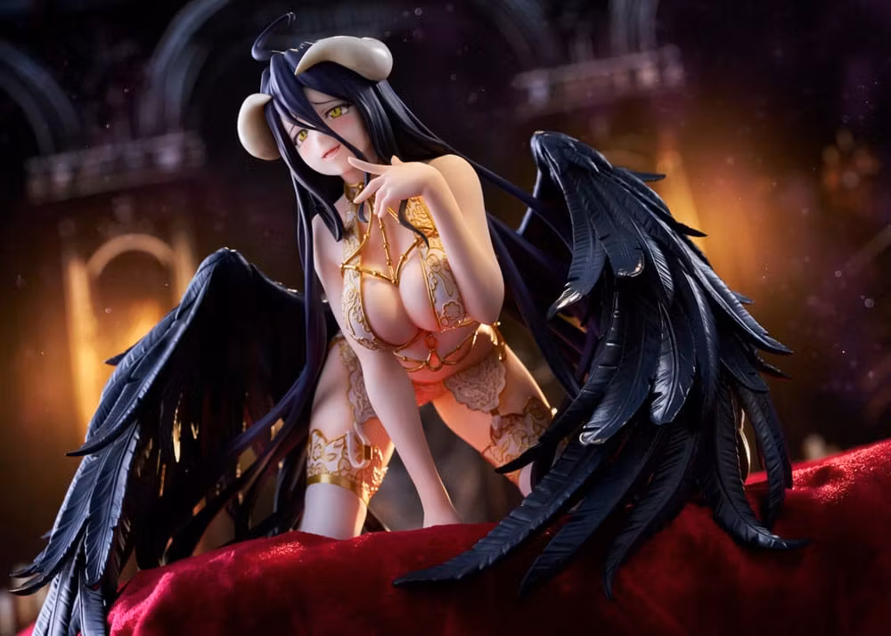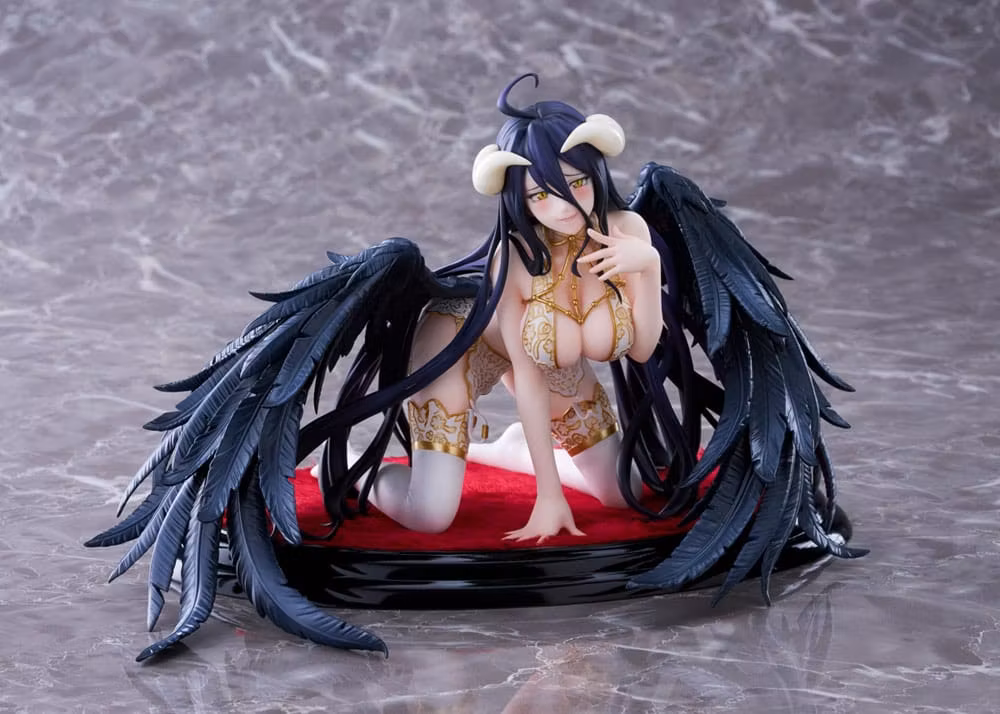 Iklädd en skimrande kritvit underkläder i en förförisk och glamorös pose stirrar figuren på dig med en hänförd blick som om den försökte förföra dig.