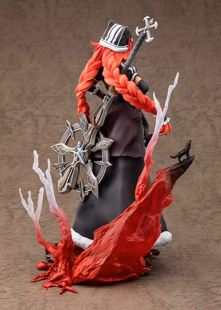The maid outfit, arranged in a priestess-like style, has been faithfully recreated, complete with a massive war hammer on her back, her distinctive braided pigtails, and her cutely shaped hat.