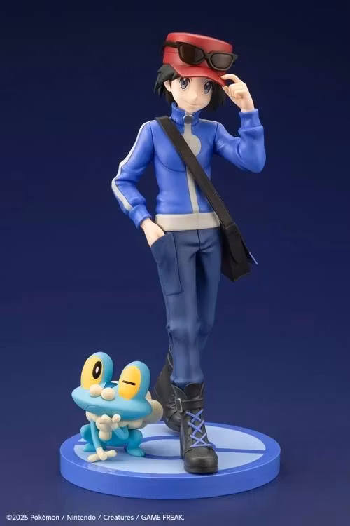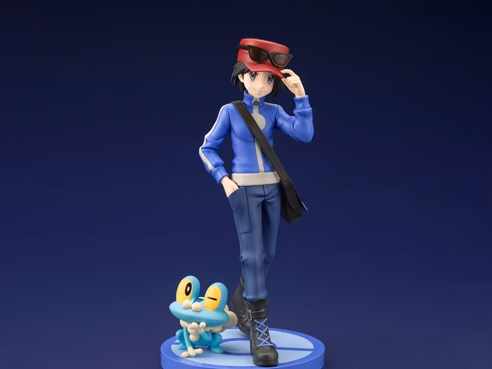 Based on an illustration by renowned artist Hitoshi Ariga, Calem’s posing perfectly captures his personality and also features his partner Pokémon Froakie. The figure captures intricate details such as the texture of Calem's boots, the unique pattern on his jacket, and the clear representation of the lenses in his sunglasses.