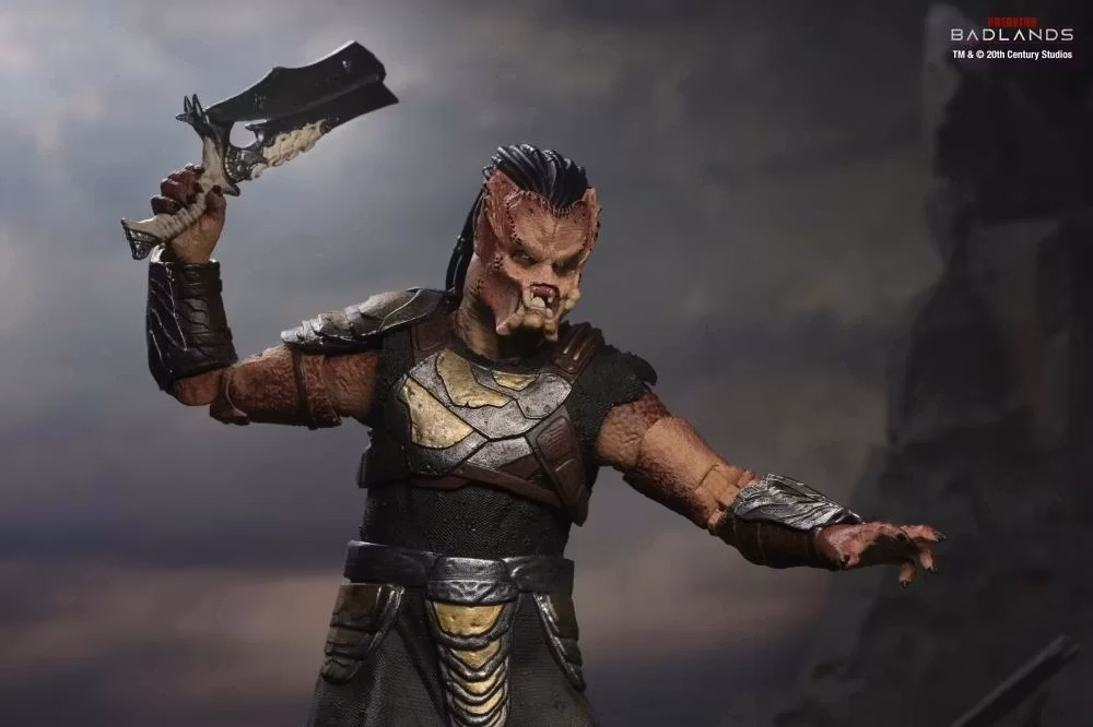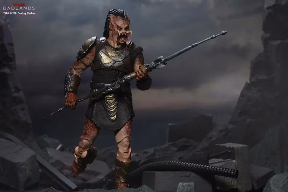 From the 2025 film Predator: Badlands by director Dan Trachtenberg! Set in the future on a remote planet called Genna, the “death planet,” a young Predator, Dek, outcast from his clan, finds an unlikely ally and embarks on a treacherous journey in search of the ultimate adversary. NECA presents Dek in his training armor in 7-inch scale Ultimate action figure form. This fully articulated figure includes interchangeable faceplates and hands, extended combistick, gauntlet blades, collapsed and extended Yautja swords, and extended Yautja compound bow. Comes in collector-friendly window box packaging with opening front flap.