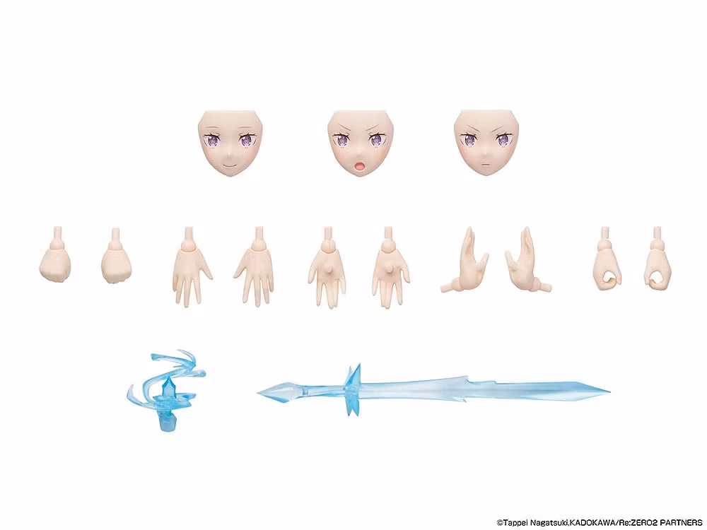- Optional parts such as an ice magic effect, ice sword, five types of hand parts, and a display pedestal are included.
