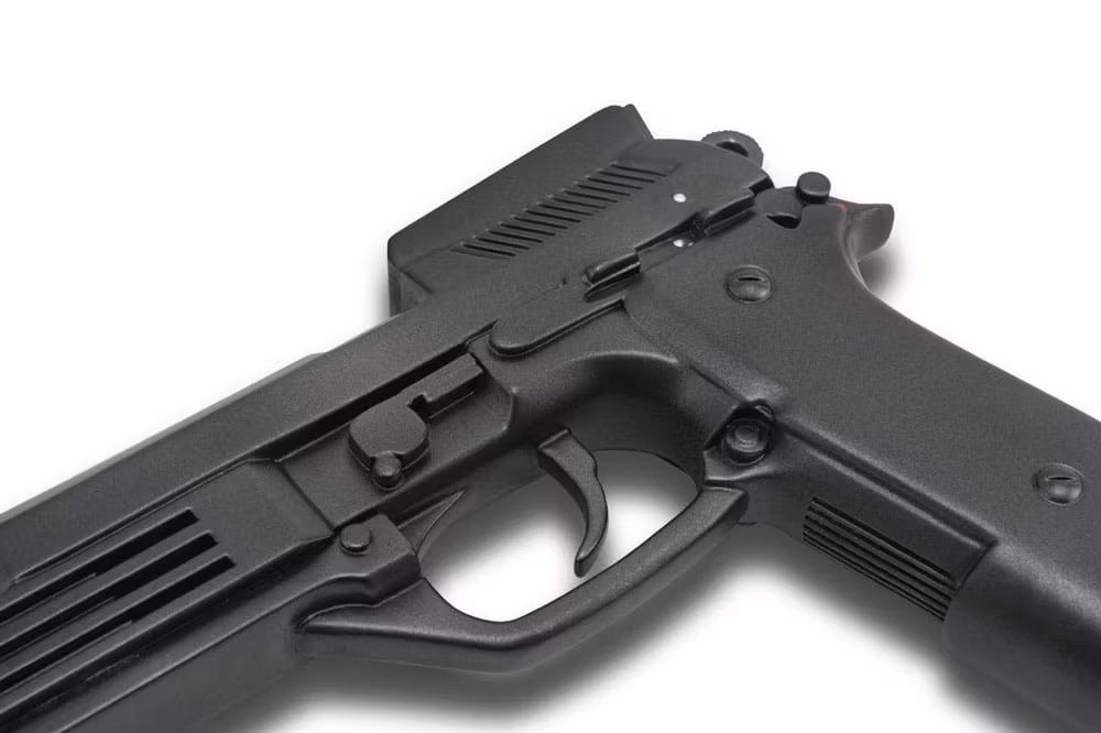 Auto 9 är tillverkad av premiumpolystone och sträcker sig imponerande 13 tum i längd och presenteras på ett temastativ som lyfter den som både en mittpunkt och ett konstverk. Från den distinkta förlängda pipan till den eleganta futuristiska profilen har varje linje noggrant replikerats för att hedra vapnet som används av Detroits ultimata brottsbekämpande polis.