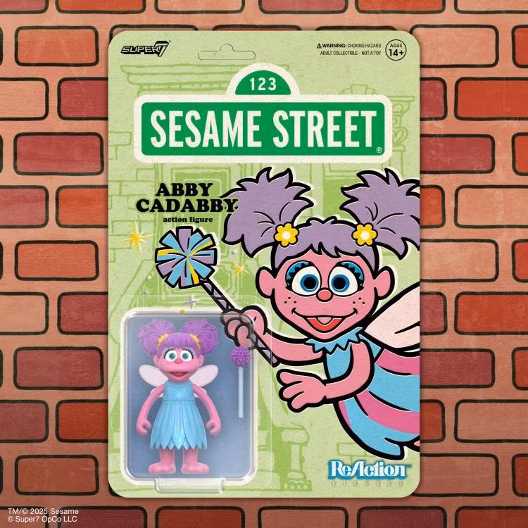 Poof! Just like magic, Abby Cadabby is here as a Super7 ReAction Figure. Inspired by the playful and imaginative fairy-in-training from Sesame Street, this collectible is full of magical details, right down to the iridescent shine on her blue dress and her clear, tinted wings. This 3.75” scale figure has five points of articulation and comes with a “pom-pom” topped wand. The blister card packaging also features original artwork, influenced by the Sesame Street setting. A must-have for Sesame Street fans, this Abby Cadabby ReAction Figure is the perfect way to add an extra bit of charm to your collection.