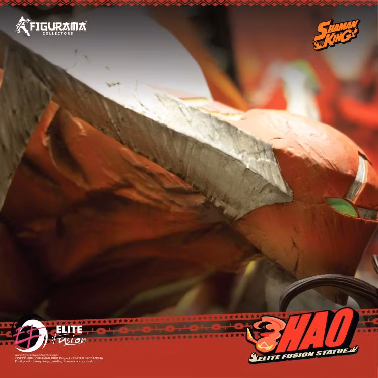 Hao Elite Fusion Statue är hälften av den allra första statyn i Figuramas Elite Fusion-linje. Hao and the Spirit of Fire, förbereder sig på att regna ner kraftiga attacker mot Yoh och hans lojala Guardian Ghost, Amidamaru. Statyn är designad för att avbilda den häpnadsväckande storleken på den kraftfulla Spirit of Fire, när dess klorade hand sträcker sig ut över basen för att skapa en plattform för sin mästare.