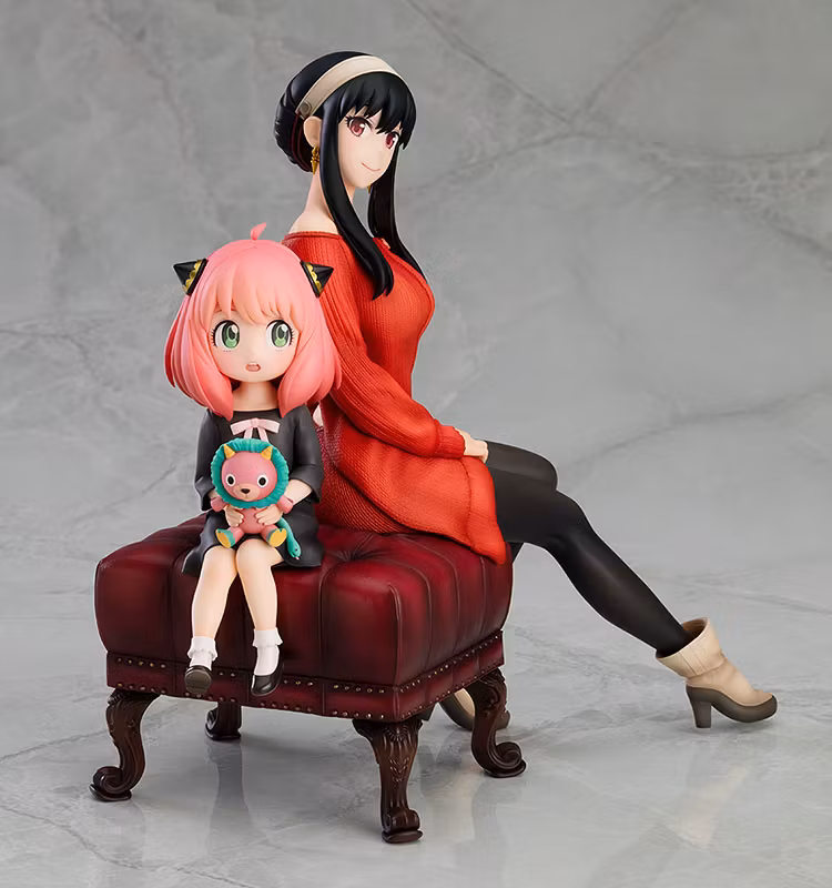 Figuren visar en något distanserad Anya och Yor som sitter på en ottoman i figuroriginella poser. Fina detaljer, som Chimera-plyschen i Anyas famn och den stickade strukturen på Yors klänning, har noggrant skapats i figurform. Se till att välkomna dem till ditt hem som din egen tillfälliga familj!