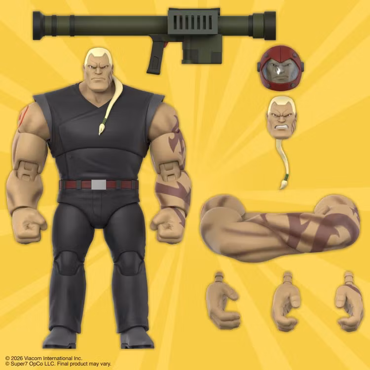A “sewer rat” and certain mutants are getting on Hun’s last nerve. So this hulking brute has plans to infiltrate your Teenage Mutant Ninja Turtle collection and cause trouble as an ULTIMATES! Figure. Inspired by the 2003 animated series, this action figure is 7” scale with premium paint and sculpting details. Double-jointed articulation in the knees and arms makes for ultimate poseability possibilities. Accessories are included as well, such as interchangeable heads, hands, a rocket launcher, and tattooed crossed arms. This figure of Hun comes in a collector-friendly window box with artwork inspired by the animated series. But this leader of the Purple Dragons street gang—and second-in-command to the Foot Clan—might want to come out of the box every once in a while. So kick off a shell of a lot of adventures with Hun ULTIMATES! now.