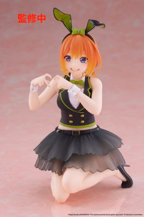 Based on the popular anime series, The Quintessential Quintuplets, comes the Desktop Cute Yotsuba Nakano (Bunny version) figure by Taito! This figure is around 5 inches in height and displays Yotsuba in a bunny girl themed outfit as she smiles while making a heart with her hands. Don't miss out on adding this quintuplet to your collection!