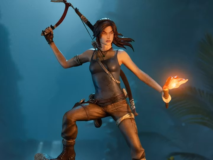 Dark Horse Comics is proud to present our third TOMB RAIDER statue, celebrating the indomitable spirit of Lara Croft from the Survivor Era. This meticulously crafted PVC statue showcases Lara in a dynamic pose, embodying the relentless courage and grit that have defined her iconic journey through ancient tombs and treacherous landscapes. Standing approximately 11 tall on a rugged rock base (8.4 wide by 10 deep), Lara is equipped for survival, with her bow slung across her back, a climbing axe gripped in one hand and a torch in another as she wards off the perils of vicious wildlife and crazed cultists found in the treacherous and mysterious landscapes she is forced to endure.. Each element speaks to her transformation from a young, untested archaeologist into a resilient survivor, pushing through overwhelming odds to become the legendary Tomb Raider. This statue offers the chance to commemorate the evolution of a heroine who forged her own path. Pre-order yours today and join Lara Croft's quest to uncover the world's most dangerous secrets!