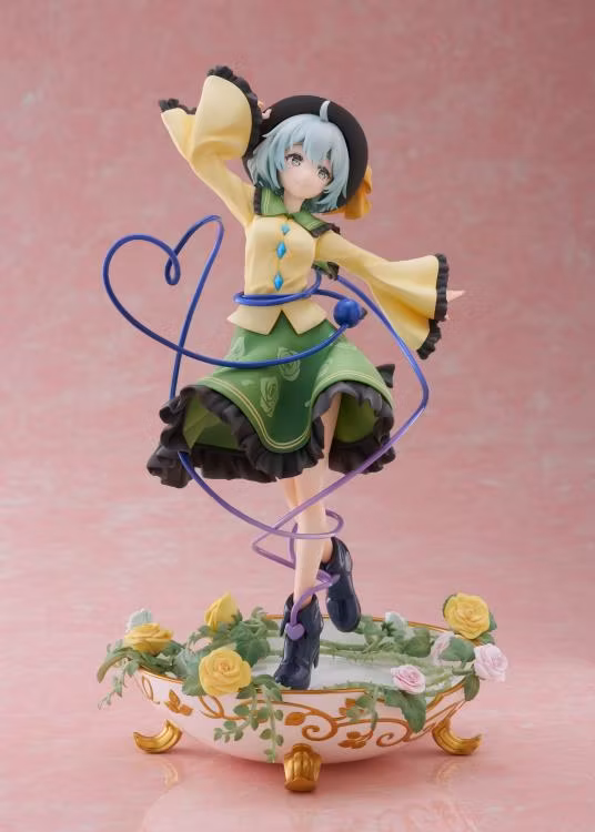 Från den populära Touhou Project-serien kommer Koishi Komeiji-figuren i skala 1/7 av Alice Glint! Den här figuren är baserad på illustrationen av Mahiro Miyase och visar Koishi Komeiji i en gul och grön outfit stående på en överdådigt dekorerad bas med ros-tema. Den här figuren är knappt 10 tum lång och kommer säkerligen att bli ett fantastiskt tillskott till alla Touhou Project-fans samling!
