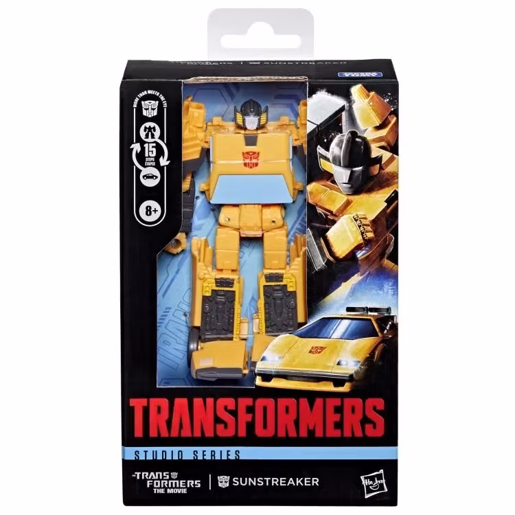 Experience the epic action of The Transformers: The Movie with the Studio Series Sunstreaker toy! The 4.5-inch (11 cm) figure converts from robot action figure to car mode in 15 steps. With movie-inspired details, good poseability, and a blaster accessory that attaches in both modes, this Transformers Sunstreaker action figure makes an awesome addition to any collection. Look for more Transformers collectible toys (sold separately, subject to availability) featuring favorite characters like Optimus Prime, Bumblebee, Megatron, and more to create a lineup that is — More Than Meets the Eye.