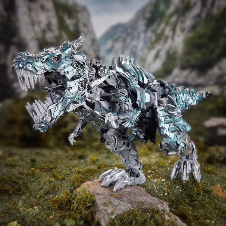 Denna massiva 15-tums (38 cm) figur omvandlas från robot till dinosaurieläge i 59 steg. Med filminspirerade detaljer, intrikat posera och fästbara tillbehör som en klubba och en taggig knoge är denna Grimlock-actionfigur ett fantastiskt tillskott till vilken Transformers-samling som helst.