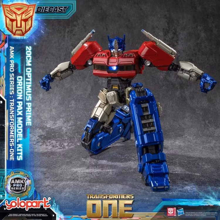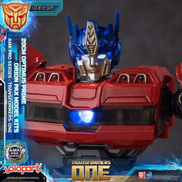 The AMK PRO Series Transformers: One Optimus Prime arrives with a bang! Unlock the legendary origins and inherit the power of leadership. Inspired by the classic movie scenes, the chest features an ingenious push-pull linkage mechanism: as the outer armors automatically open, the Matrix of Leadership will be revealed! The model's skeleton and outer armors are made of diecast, combining metal and fine structures for a smoother and steadier handling experience! The Optimus Prime’s eyes and chest feature lighting units that can be activated using the faction symbol on the base. The Matrix of Leadership is richly detailed and can be independently removed for display.