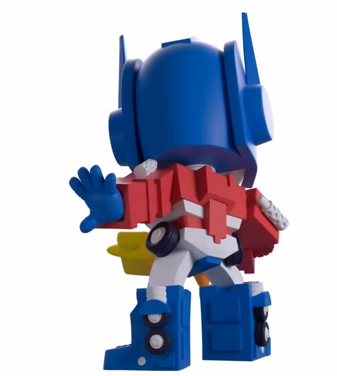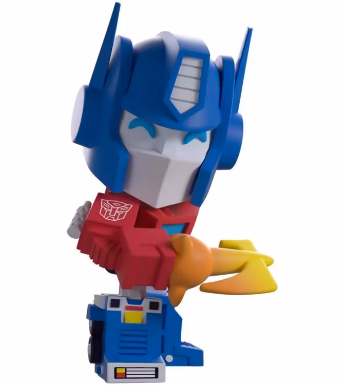 Är du redo att rädda Youtooz och planeten? Eftersom Optimus Prime har anlänt för att söka upp den enda personen som kan hjälpa. Du! Han är 4,4 tum lång och vrider en fyrkantig kropp i förberedelse för att klyva sin fiende i två delar med den ljusorange och gula Energon Axe som kommer ut från hans högra hand, hans vänstra hand kastas bakåt medan beslutsamma ögon lyser ut genom en ljusblå hjälm som har en antenn på varje öra. Hans kropp består av en förvandlad lastbil, blå strålkastare sitter ovanpå en röd bröstkorg med avgasrör som sadlar varje axel och en serie hjul löper längs hans sidor till blockiga blå fötter. På utsidan av hans förpackning ser man Optimus i lastbilsform köra i hög hastighet på en grusväg. Medan interiören är insvept i den djupa blåsvarta rymden med små lysande stjärnor och Autobot-logotypen på baksidan, är det svarta skyddsfodralet sedan täckt av ett rött och gult dis över ett vitt rutnät när hans figur kan ses genom det stora genomskinliga fönstret på förpackningens framsida. Detta samlarobjekt levereras i ett matt, präglat, skyddande ytterfodral och ett plastskydd i specialstorlek för maximalt skydd under transport.