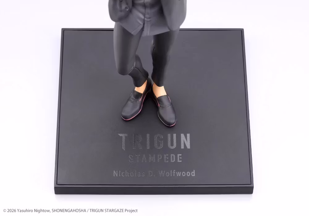 Nicholas D. Wolfwood from TRIGUN STAMPEDE joins the OSHI WORKS series in the same scale as his ARTFX J counterpart! Depicted wearing a stylish black suit with paired glasses, Nicholas is seen walking forward with a bemused expression on his face. Created in outstanding detail, this is one figure you won't want to miss out on! Order yours today!