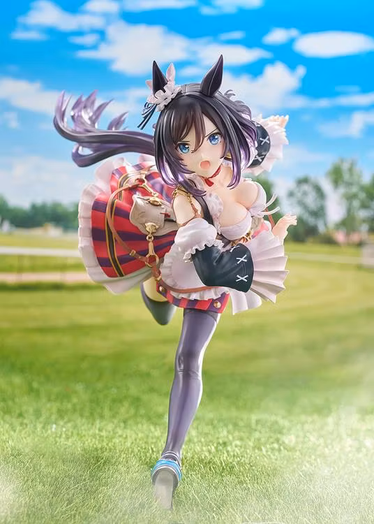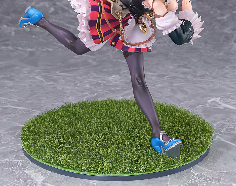 From Umamusume: Pretty Derby comes a 1/7 scale of Eishin Flash, running at full speed in her Meisterschaft racewear. The figure features the Umamusume in a dynamic sprinting pose, just as she makes her last spurt. Her expression is serious and determined, revealing a captivating and fresh take on the usually calm and composed Eishin Flash. The intricate details of her outfit have been carefully recreated in figure form, and special attention has been paid to the paintwork of the different colors and textures in order to create an appealing three-dimensional rendition of Eishin Flash. An interchangeable smiling face plate is also included, allowing you to display the runner in an entirely different light. Additionally, a turf sheet is included for an extra bit of realistic flair. Enjoy exploring the various display options available!