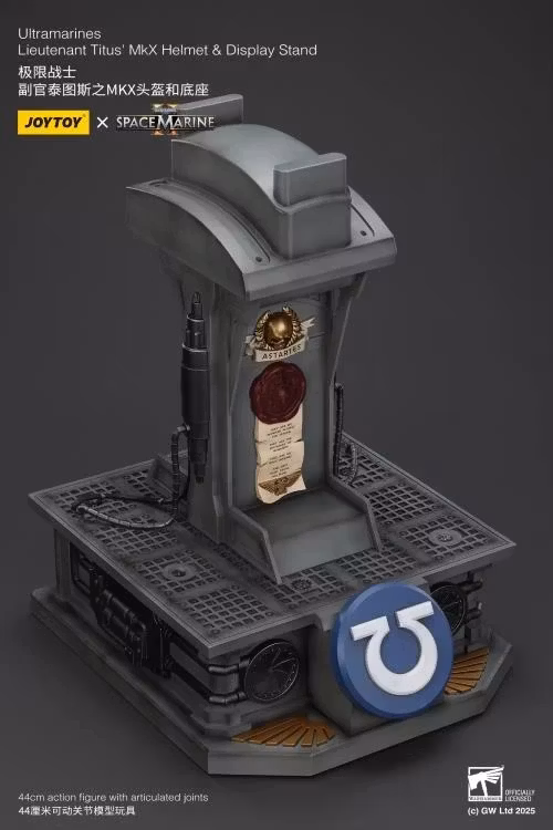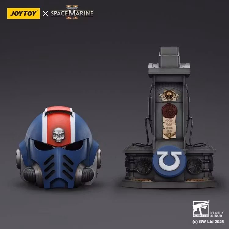 JoyToy is proud to present a new helmet replica based on the smash hit video game Warhammer 40,000: Space Marine 2! Based on the protagonist Demetrian Titus' base helmet, this awesome replica is a 1/1 scale replica and features jaw-dropping detail lifted directly from the game. When you're not busy battling xenos and heretics, a special display stand featuring the Ultramarine's Chapter logo is included and is perfect for displaying your helm. Pledge your loyalty to the Emperor and the Ultramarines by ordering yours today!