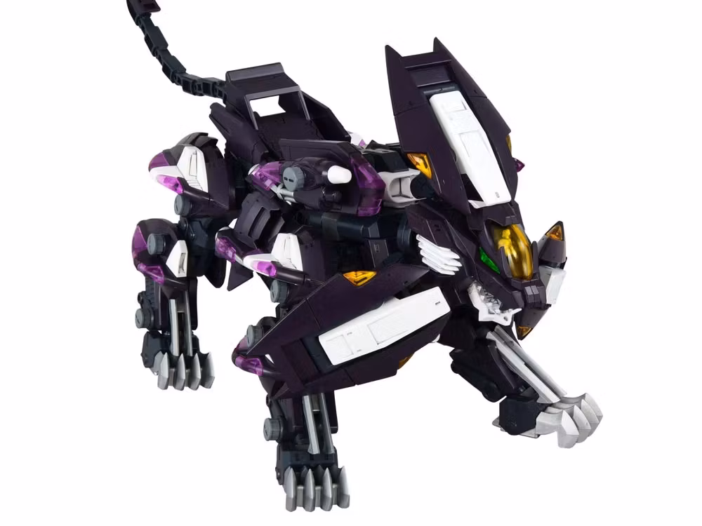 The color variation featured in the video game ZOIDS 2: Helic Republic VS Guylos Empire arrives as a Realize Model. This kit features full-body articulation via poseable mechanisms and faithfully recreates all of Trinity Liger's signature gimmicks: a rotating mane section, deployable stored weapons, back-mounted weapons, claw weapons, and movable waist boosters.