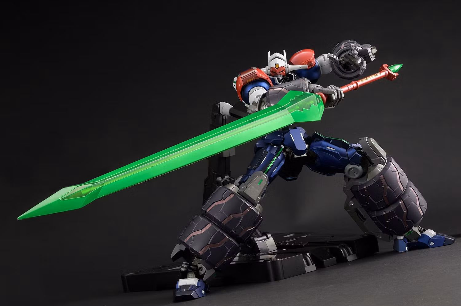 Three interchangeable face parts are available: normal, gritting teeth, and shouting. The face mask opens and closes without needing to be swapped, faithfully reproducing the impressive gimmick from the show. The Hyper Dendoh Denchi is interchangeable, and the articulation of the turbines in both arms and legs are meticulously crafted, with attention paid to even the smallest details. The final weapon, Akatsuki no Odachi, is also included, allowing you to proudly recreate its climactic appearance.