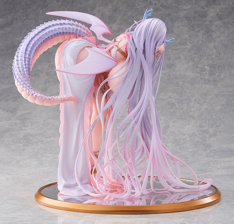 Every detail has been carefully sculpted, including the delicate flow of her hair, sweaty glossy skin, translucent horns, and the scales of her massive tail.