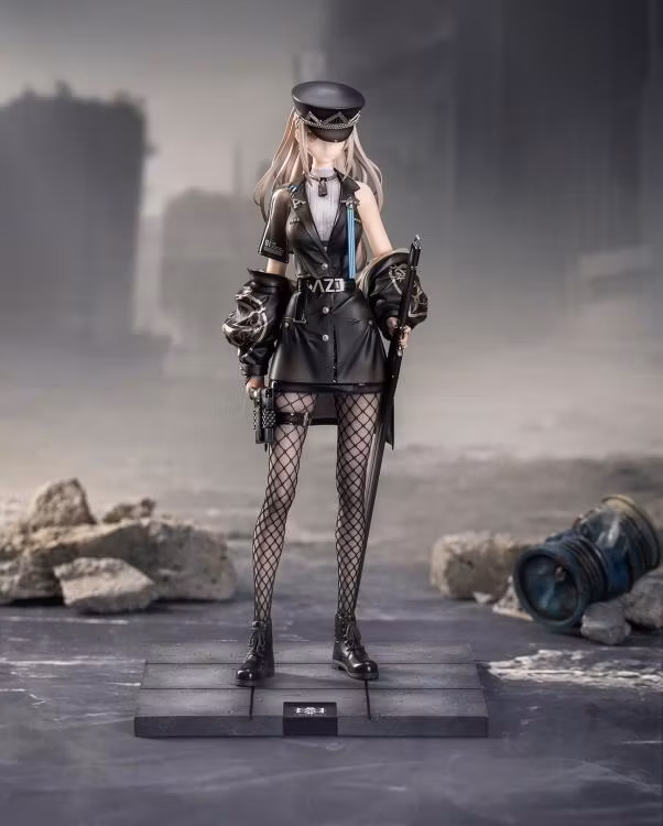 Holding a sword in her hand, [B]'s right eye peers straight ahead through her brim, exuding a piercing gaze. The outer garment drapes down in natural folds, which are sculpted exquisitely with a high level of details, and the white fabric inner layer and the transparent half-sleeve on the right shoulder perfectly replicate the design in the original illustration.