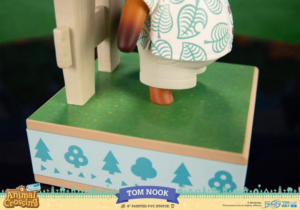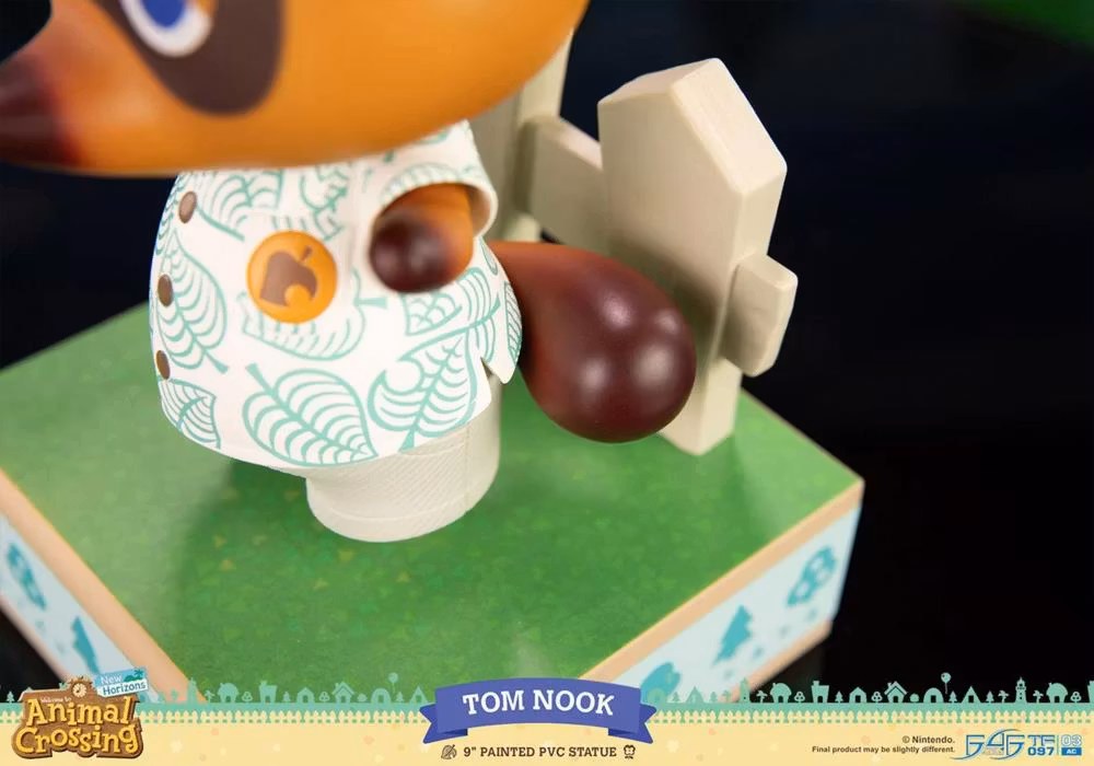 Tom Nook is a raccoon (tanuki in the Japanese version) who oversees multiple businesses across the Animal Crossing series. In Animal Crossing: New Horizons, he becomes a travel agent, is the founder and owner of Nook Inc. and manages the Resident Services building. The statue faithfully captures Tom Nook's appearance, from his droopy eyes to his brown fur. Every detail of Tom Nook's attire, from the Nook Inc. aloha shirt to the khaki shorts, has been meticulously replicated. The highly detailed base is inspired by the Animal Crossing: New Horizons art style. Animal Crossing: New Horizons - Tom Nook includes: - Animal Crossing: New Horizons - Tom Nook painted PVC statue - Highly detailed base inspired by Animal Crossing: New Horizons - F4F Leaflet with 500 F4F reward points included