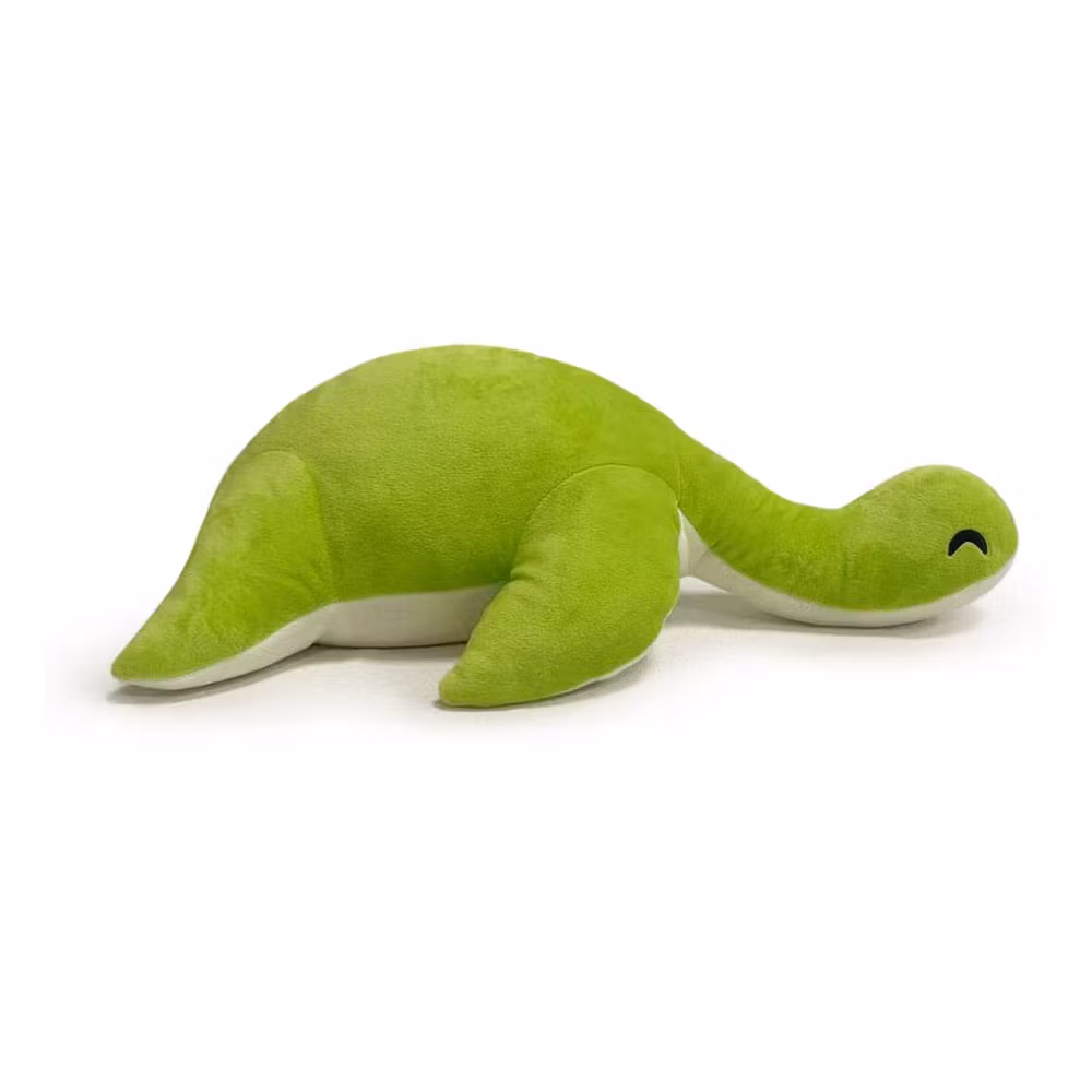 Youtooz has found all the hidden Nessies and hit them in order for a giant Nessie to appear! Measuring at 16 inches long and weighing 2.7lbs/1.2kgs with her long neck flopped forward, a pair of cheery eyes sit on her vibrant green head which leads down to the four thick fins of her round body that are splayed out as her light underside rests on the ground. This plush is packed to the seams with 100% PP cotton and is made of the softest minky material, absolutely perfect for cuddling or finding secrets with!