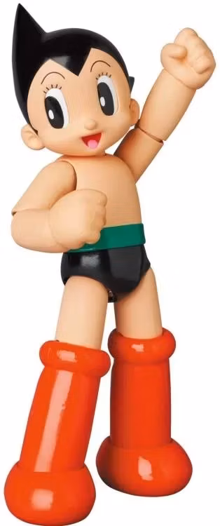 Denna mest ikoniska av de japanska hjältarna är cirka 16 cm lång och är otroligt poporterbar, så han kan bekämpa brott och motverka orättvisor med stor lätthet! Astro Boy-actionfiguren levereras med jetflammeffekt-delar för fötter och nedre delen av ryggen, sökljusögondelar, en utbytbar torso med öppen lucka för att visa hans inre funktioner, och tre ansiktsuttryck med utbytbara ögon så att du kan ändra riktningen han tittar i.