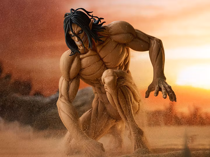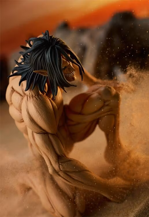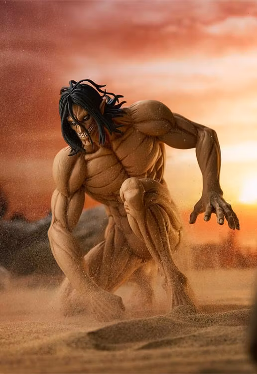 Från den populära serien Attack on Titan kommer en otrolig Pop Up Parade-figur av huvudkaraktären Eren Yeager i Titan-form! Den här titanen mäter cirka 6 tum medan han knäböjer på marken och skulpterades med stor detaljrikedom i mindre skala, vilket gör den till det perfekta tillskottet till din animesamling.