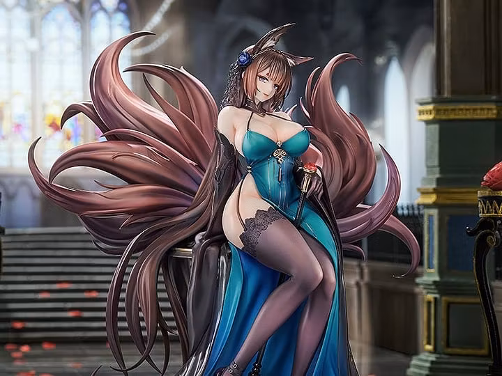 From the popular smartphone game Azur Lane comes a 1/7 scale figure of Amagi in her gorgeous Throne of Fallen Petals dress! The figure features the dignified and gentle Amagi sitting elegantly on her throne. Her calm and composed appearance is sure to charm. Details such as the dress, outfit and stockings have been carefully sculpted meticulously painted.