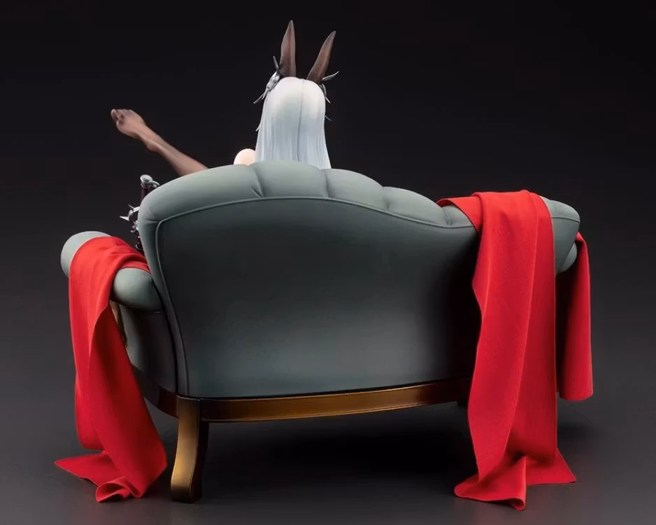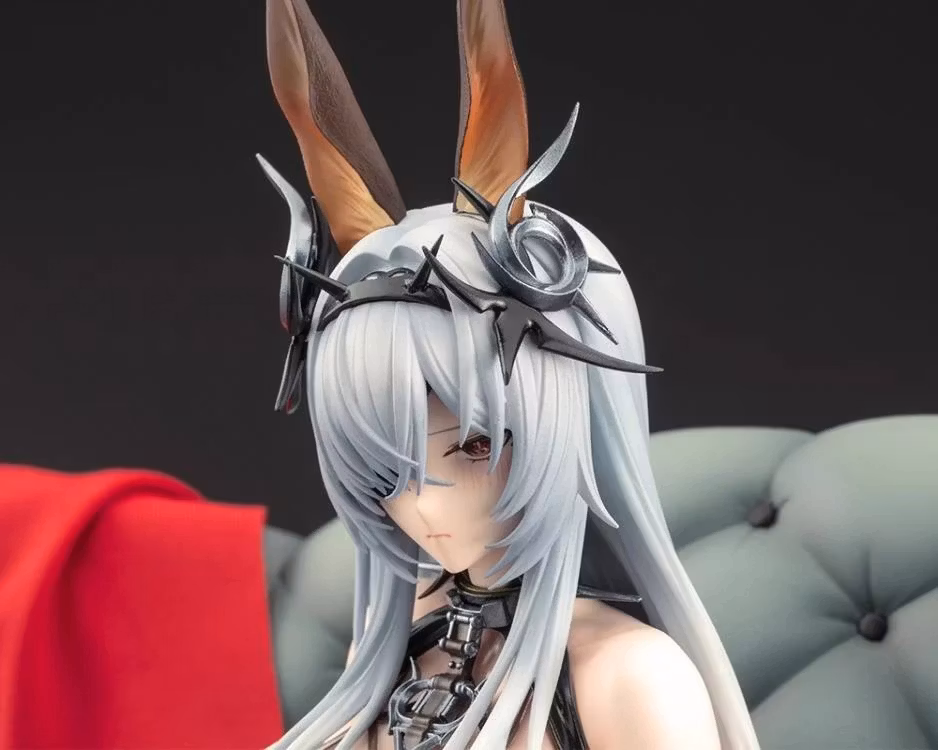 Her exquisite body line is faithfully recreated. The delicate wrinkles in her bunny outfit are carefully applied, and the tight fit of her attire highlights her glamorous proportions. The enamel-like lustrous coating further brings out the texture. The softly curved thighs feature meticulous detailing at the costume and accessory boundaries.