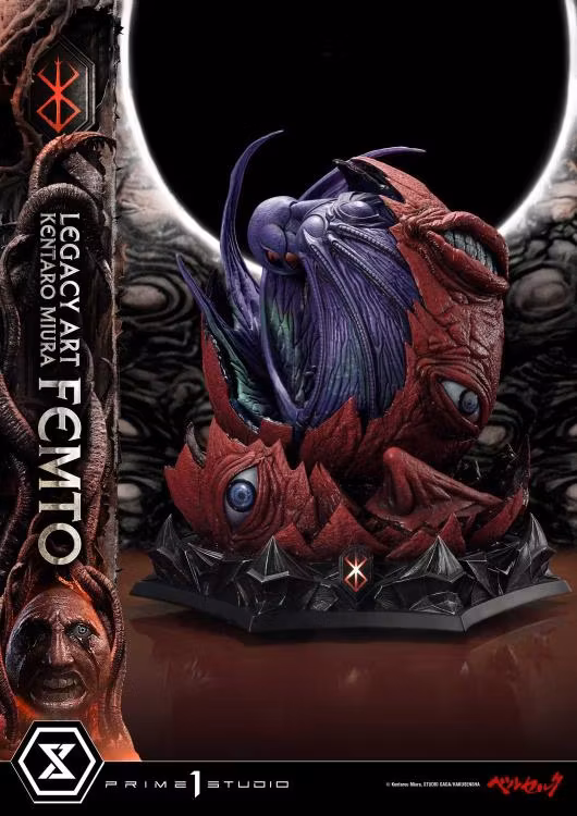 Femto, den femte medlemmen i Guds Hand, föddes under förmörkelsen, som inträffar en gång vart 216:e år, efter att ha offrat sitt Falkband och sin enda sanna vän. Det här stycket är modellerat efter omslaget till volym 12 av den ursprungliga mangan, och fångar den ikoniska scenen som symboliserar kausalitet. Den tunga, oljefärgsliknande texturen är återskapad i polystone och ger detta ögonblick liv i tre dimensioner.