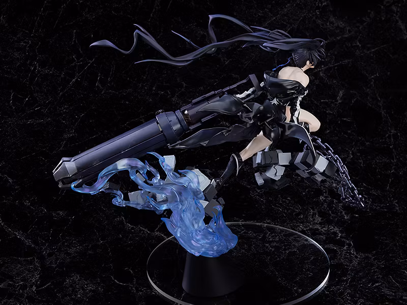 Figuren visar Black Rock Shooter i en dynamisk pose som rusar genom sönderfallande bråte, hennes vackert skulpterade kropp verkar både bräcklig och oerhört stark på samma gång. Black Rock Shooter bär sin Rock Cannon, som nästan ser ut som om den svävar i luften, medan accenter med blå flammor dekorerar figurens bas. Från topp till botten har figuren massor av iögonfallande detaljer som du bara kan hitta i 3D-form.
