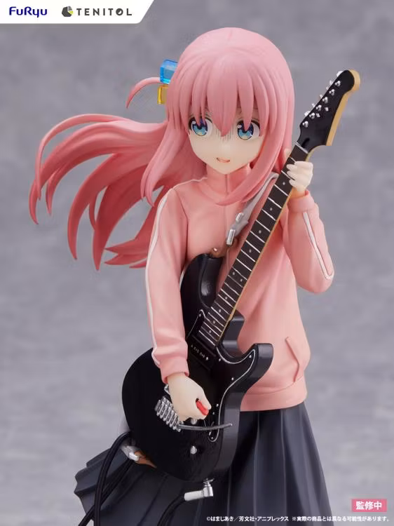 Från den populära Bocchi the Rock! anime-serien kommer Tenitol Hitori Goto-figuren från FuRyu! Hitori Goto ses spela gitarr och är tredimensionaliserad med ett mycket "Bocchi"-liknande uttryck. Den här figuren kommer med en piedestal inspirerad av en övningsstudio! Denna mycket detaljerade modell visar till och med karaktären med en söt orolig, så dekorera och njut av Bocchi-chan! Se till att lägga till den här figuren i din samling!