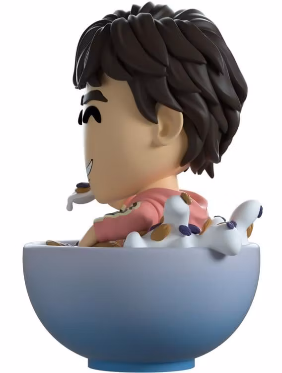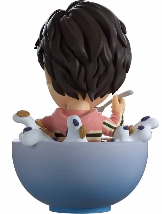 Walt Jr gör sin Youtooz-debut med ett stänk! Sitter lycklig i en gråblå skål på 4,5 tum lång, hans arm vilar avkopplande på kanten medan vit mjölk och flingor skvätter ut från omkring honom i stora droppar. Med ett stort glatt leende över ansiktet och lurvigt brunt hår på huvudet höjer han glatt en sked full med flingor redo att gräva ner sig i sin frukost medan hans enkla rosa luvtröja och vita t-shirt försvinner ner i mjölkdjupet av den viktigaste måltiden av dagen! Utsidan av hans förpackning ser en utsökt uppdelning av frukostmat över ett mörkt träbord, redo att rivas. Medan interiören är en närbild av pannkakor, bacon och flingor som flyter på hans skyddande ärm. Detta samlarobjekt levereras i en matt, präglad, skyddande ytterhylsa och ett specialformat plastskydd för maximalt skydd under frakt.