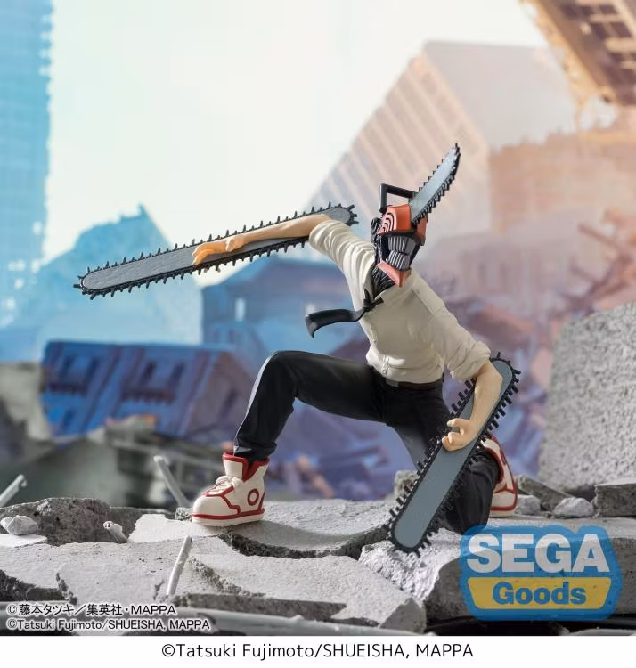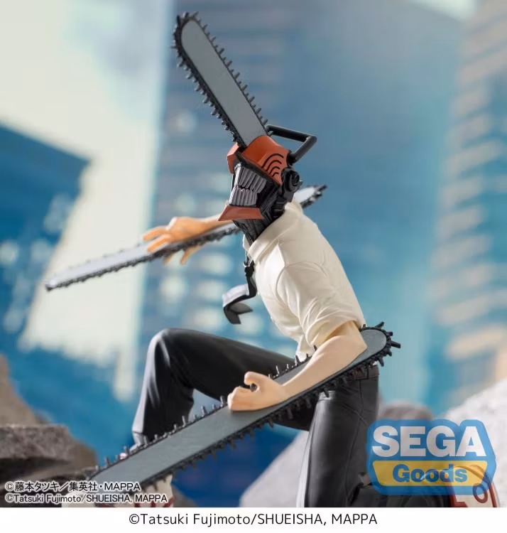 Segas Premium Perching-figurserie har en mängd olika karaktärer från olika källor skulpterade med förmågan att "sitta upp", vanligtvis i sittande ställning, från hyllor och avsatser. Den här gången har Denji som Chainsaw Man från animen, Chainsaw Man, återskapats som ett mycket detaljerat tillägg till PM Perching-serien, med en skulptur som förblir trogen karaktärens ursprungliga design som ses i dess respektive media.