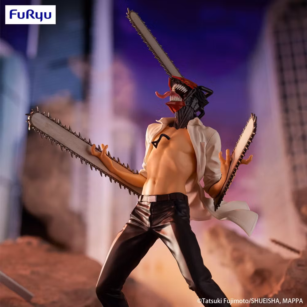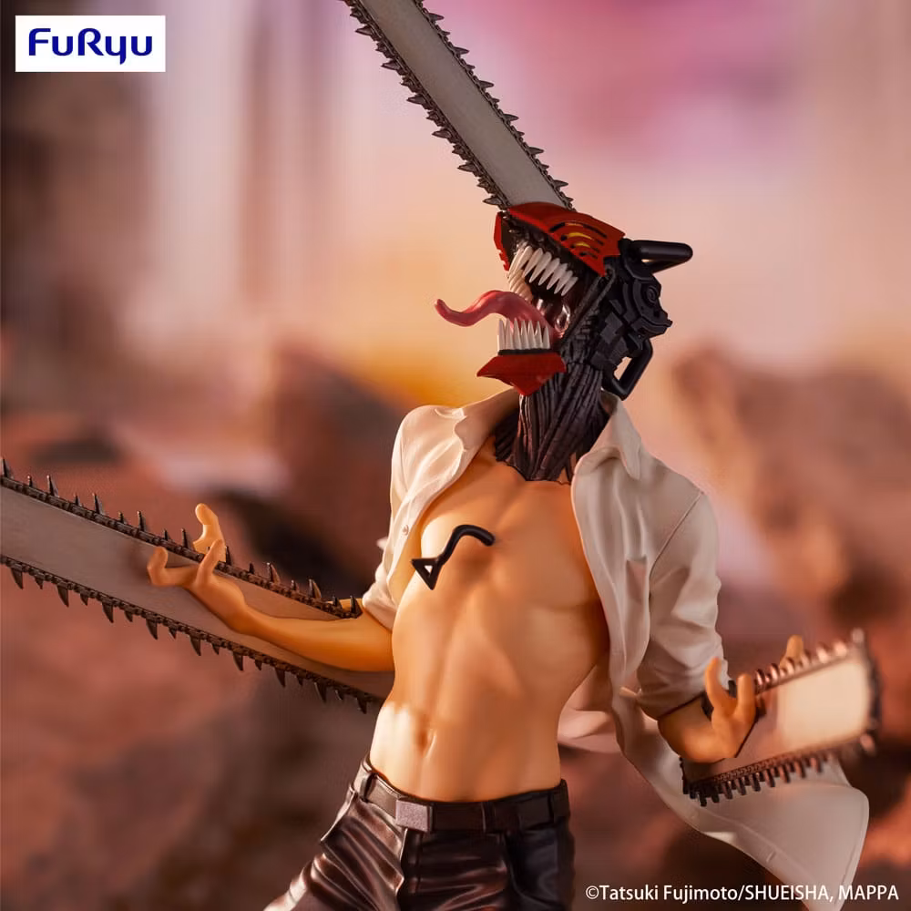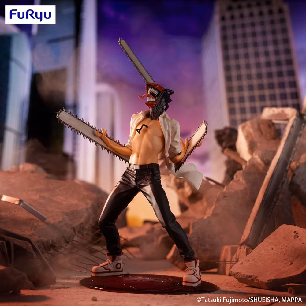 Från "Chainsaw Man" kommer denna detaljerade PVC-staty! Den står ca. 23 cm lång och kommer i en tryckt kartong.