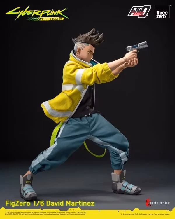 FigZero 1/6 David Martinez-figuren är cirka 28 cm (11 tum) hög med cirka 32 artikulationspunkter, för att fånga alla karaktärens ikoniska actionscener från Cyberpunk: Edgerunners. Med hjälp av threezeros nyutvecklade torso fångar figuren Sandevistan på ett korrekt sätt. Threezeros tyghantverk kombinerar flera material för att skapa en specialanpassad passform som troget återskapar animens distinkta kostymdesign. Tygmanteln innehåller en bult-in metalltråd, vilket säkerställer hög posabilitet för dynamiska aktionsställningar.
