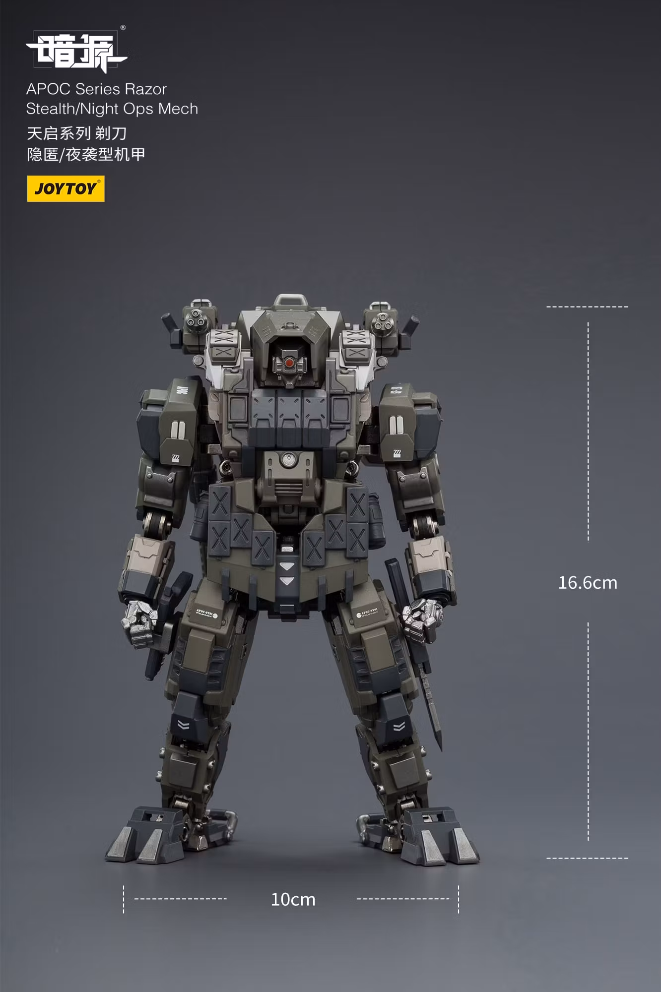 Being added to the Dark Source line by JoyToy comes the Razor Stealth/Night Ops Mech action figure! This 1/25-scale figure is slightly over 6.5 inches tall and includes various interchangeable parts and accessories. Based on preference, this figure can be stylized with any Dark Source action figures (sold separately) inside the mech suit or just by itself!