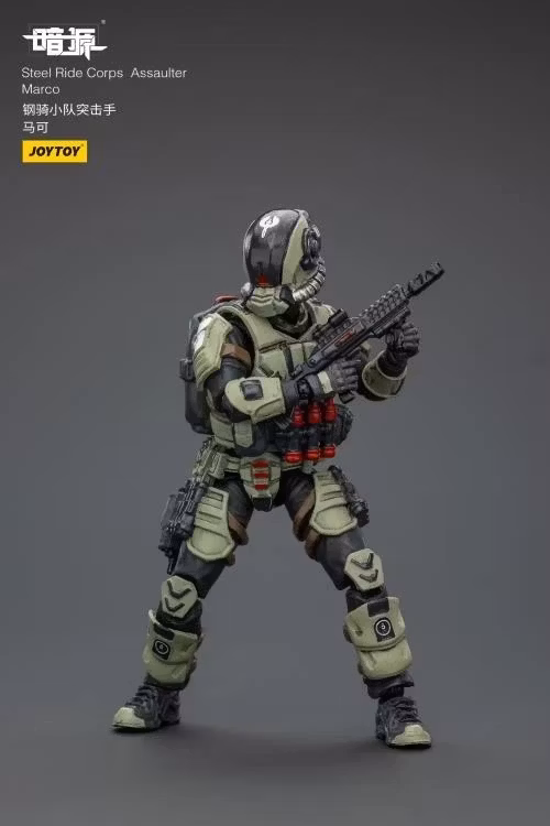 The Steel Ride Corps join the fight in detailed 1/25 scale. Clad in tactical gear and armor, Assaulter Marco is fully articulated and ready to battle as part of your Dark Source collection.
