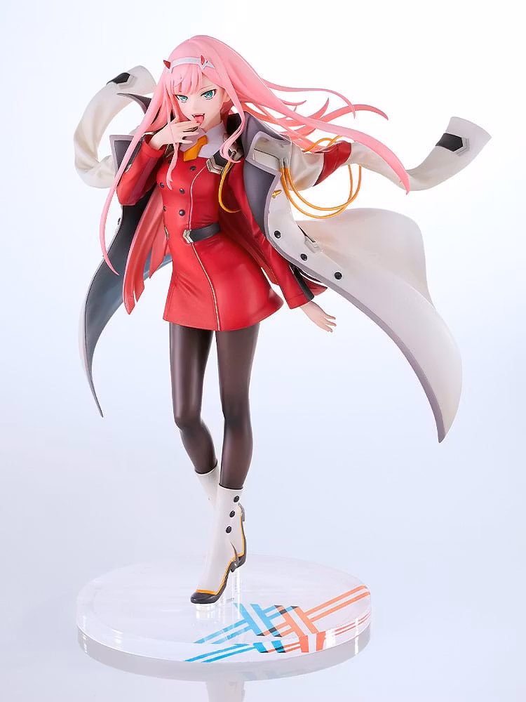 From the anime series Darling in the Franxx comes a scale figure of Zero Two based on an illustration for a periodical drawn by character designer Masayoshi Tanaka. Zero Two has been brought to life in figure form, donning her familiar coat and infectious smile. Fine details from the illustration, such as Zero Two's hair flowing in the wind, have been faithfully recreated. Be sure to add her to your collection!