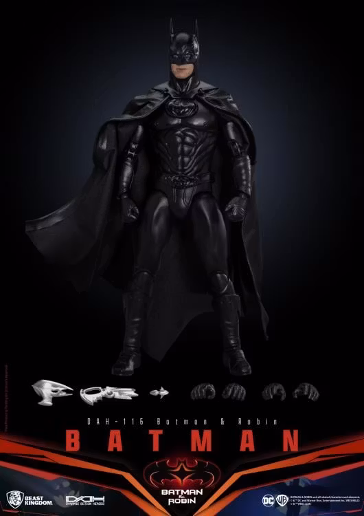 Underhållningsmärket Beast Kingdom introducerar det senaste tillskottet till sin mycket detaljerade och artikulerade DAH-serie (Dynamic 8ction Heroes): DAH-116 Batman 1997. Denna figur är inspirerad av George Clooneys porträtt av Batman, med en huvudskulptur som är minutiöst utformad för att fånga hans ansiktsdrag och uttryck från filmen. Figuren framhäver den unika designen av Batmans dräkt, inspirerad av rustningen hos antika grekiska krigare, och visar upp detaljerade muskelkonturer och en matt finish. Den högkvalitativa tygkappan och de över 22 artikulationspunkterna gör det möjligt för fansen att posera Batman i dynamiska, heroiska ställningar. Dessutom innehåller setet utbytbara tillbehör som en lätt änterhake och en isbrytande änterhake, vilket gör det möjligt för fans att återskapa Batmans ikoniska utseende från Batman och Robin.