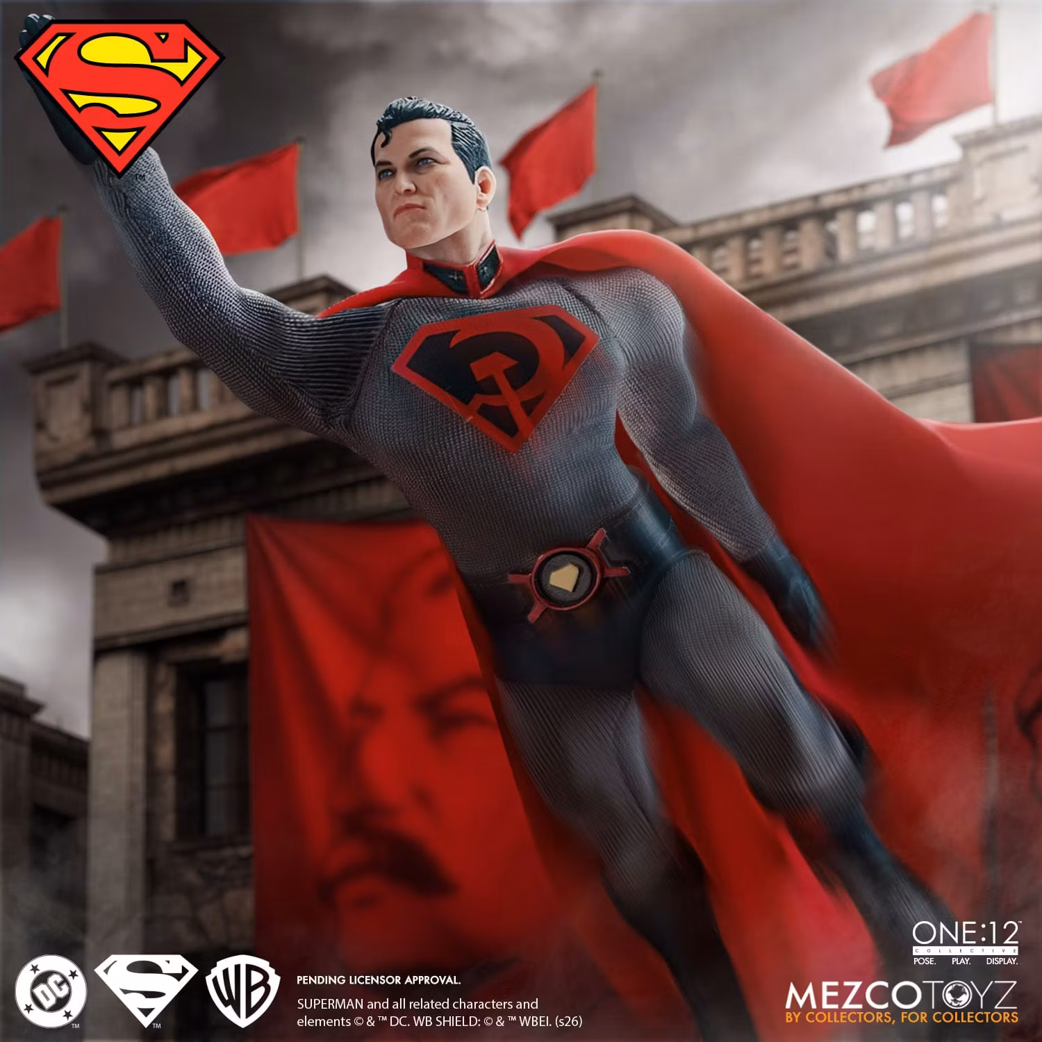 One:12 Collective Red Son Superman presenterar en slående nytolkning av Stålmannen, klädd i en texturerad dräkt märkt med den omisskännliga hammaren och skäran. Hans auktoritära närvaro matchas av en skräddarsydd tygmantel med en integrerad poseringstråd, vilket möjliggör dramatiska, luftburna uppvisningar värdiga en värld under hans vakande.
