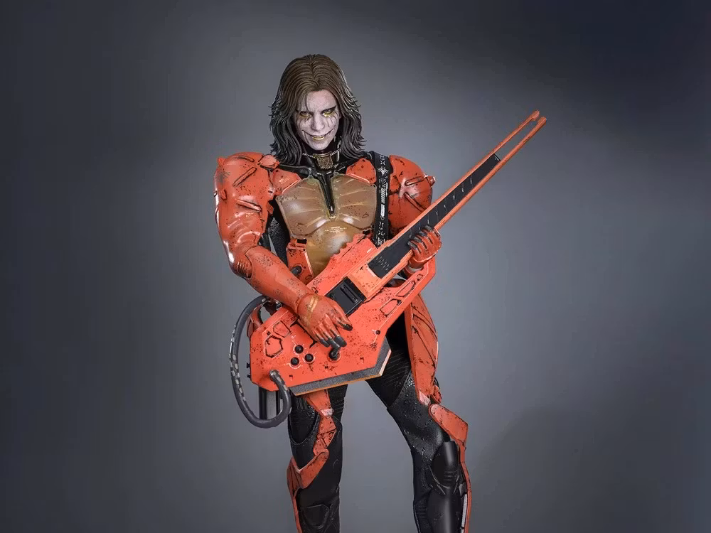 Higgs comes outfitted in his signature suit with orange armored pieces including arms, chest, abdomen, back, thighs, and a pair of exoskeleton. Also coming with a gold necklace, Odradek, boots and a red mask for alternate display options. Nine pieces of interchangeable hands allows collectors to display him in relaxed, guitar playing, combat stances, and more. He’s armed with a pistol and his iconic battle guitar — a weapon and statement piece that embodies his theatrical persona — that can be attached with accessories such as a guitar strap and a string of Higgs’ gut that connects the guitar to his waist. The entire set is presented on a specially designed Death Stranding 2 figure stand.