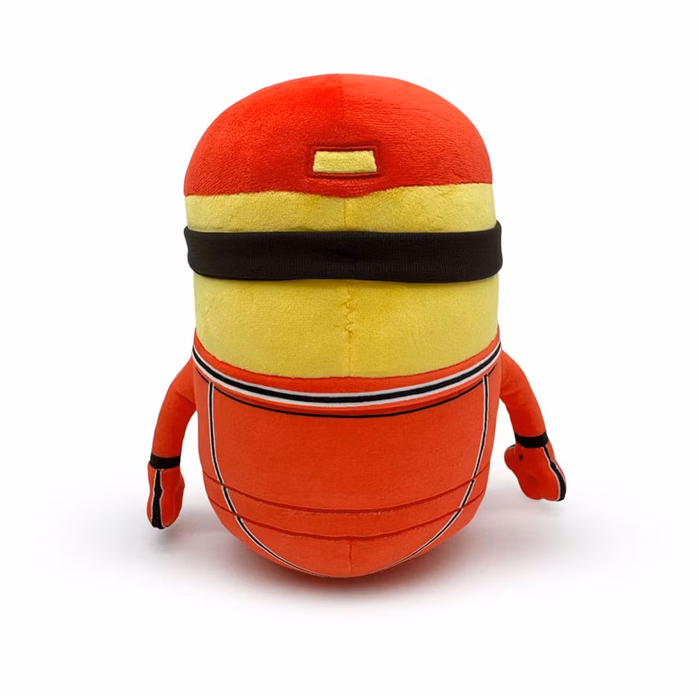 Sitting at 9 inches tall and wearing an orange racing suit with black and white stripe detailing along the arms and and neck as decal pattern the front, above this minion's smiling face he wears an orange hat with a checkerboard detail under the brim! This plush is packed to the seams with 100% PP cotton and is made of the normal and sublimated minky materials, perfect for cuddling or racing with!