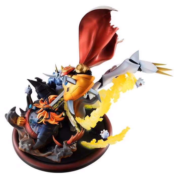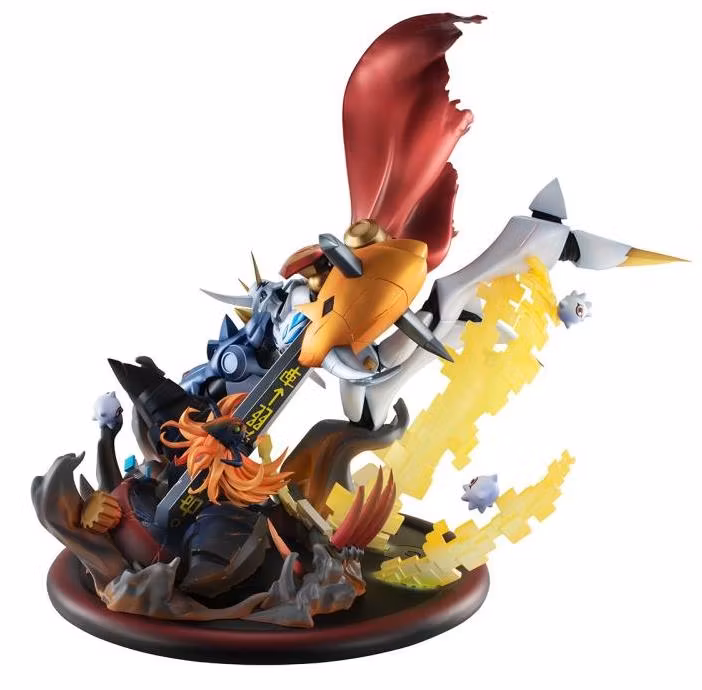 Lägg till din Digimon-samling med denna dynamiska, livfulla figur med Omegamon och Diaboromon! Baserad på Digimon Adventure: Our War Game, skildrar denna detaljerade figur en episk strid mellan dessa två kraftfulla Digimon.