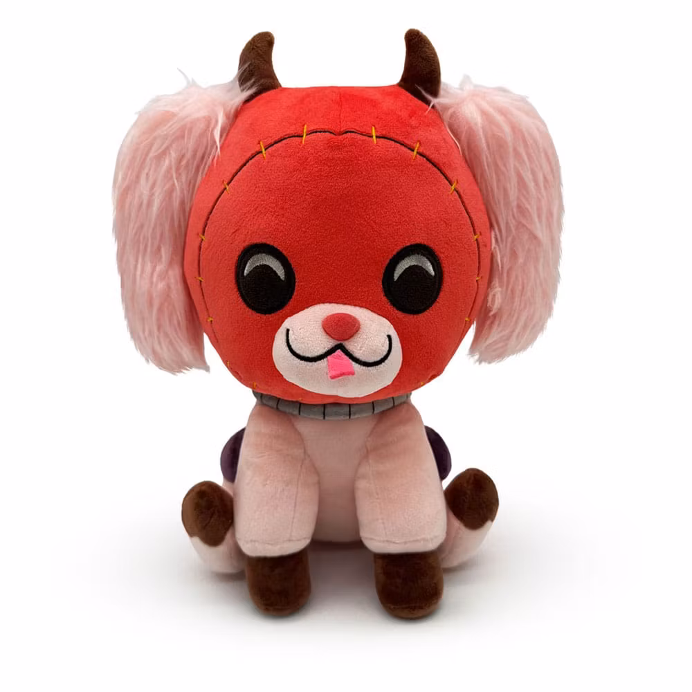 Vad gör alla dessa döda kroppar här? Vänta... Rör den sig?! Kikurage, är det här ditt fel?! De sitter 9 tum långa med runda svarta ögon och en kort kluven tunga som sticker ut från en leende nos, deras huvud är täckt av en sydd röd mask med ett par fluffiga öron som fläktar ut från vardera sidan när korta horn sticker ut framför toppen. De bär en grå krage runt halsen och har hovförsedda tassar som stöttar upp dem, och den ljusrosa kroppen har mörka märken på bakbenen när en tunn spetsig svans sticker ut från ryggen. Denna plysch är packad till sömmarna med 100% PP-bomull och är gjord av en blandning av minky och pälsmaterial, helt perfekt för att gosa och leka med insekter!